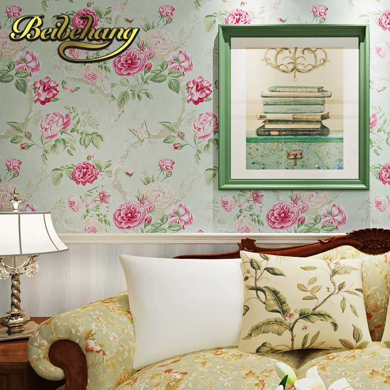 beibehang wall paper. papel de parede 3d Pune wallpaper American pastoral style flower green warm p