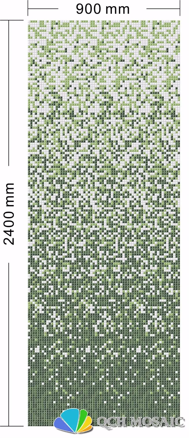 Ceramic mosaic tile for house decoration wall tile green color gradual changes pattern 900xH2400mm