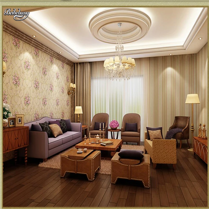 beibehang Striped Nonwovens Wallpapers Living Room Bedroom TV Backdrops American Village Warm Pasto