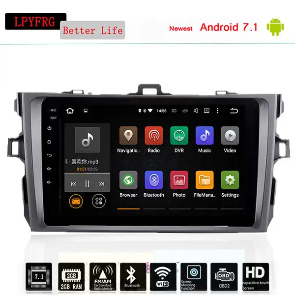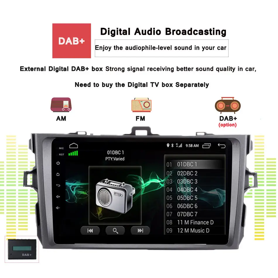Android 9.0 GPS System for Toyota corolla 2007-2011 DVD player With stereo Bluetooth Radio AUX in d