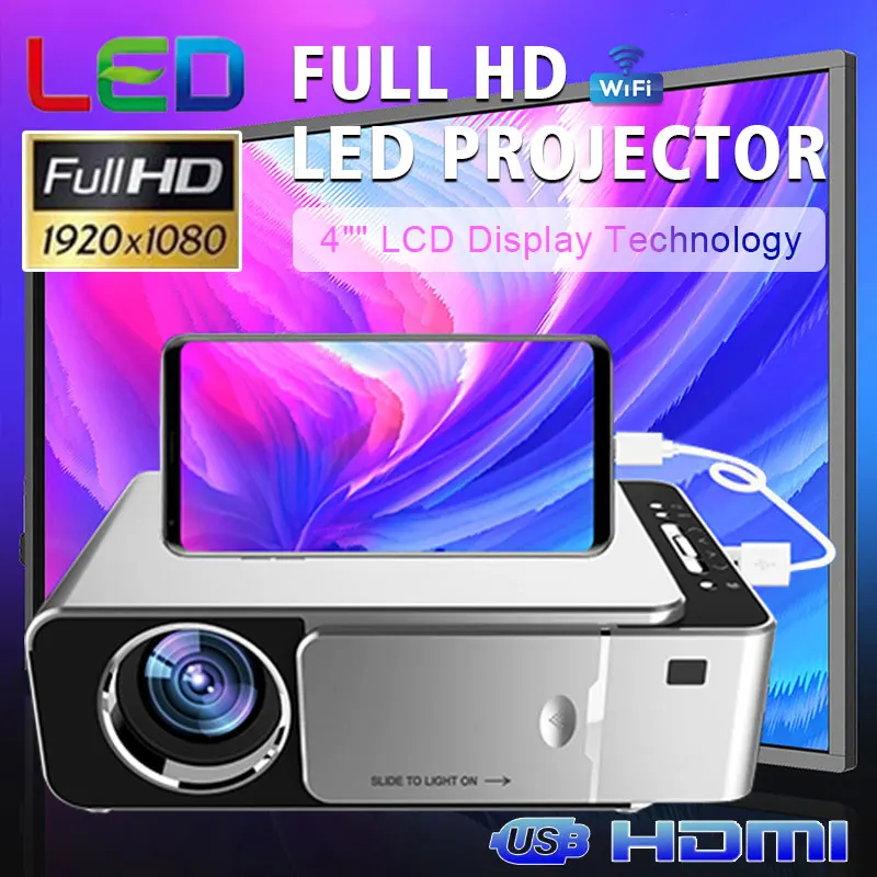 HIGH QUALITY NEW T6 3500 Lumens HD Portable LED Projector Native Resolution 720P HD Video Projector USB VGA HDMI